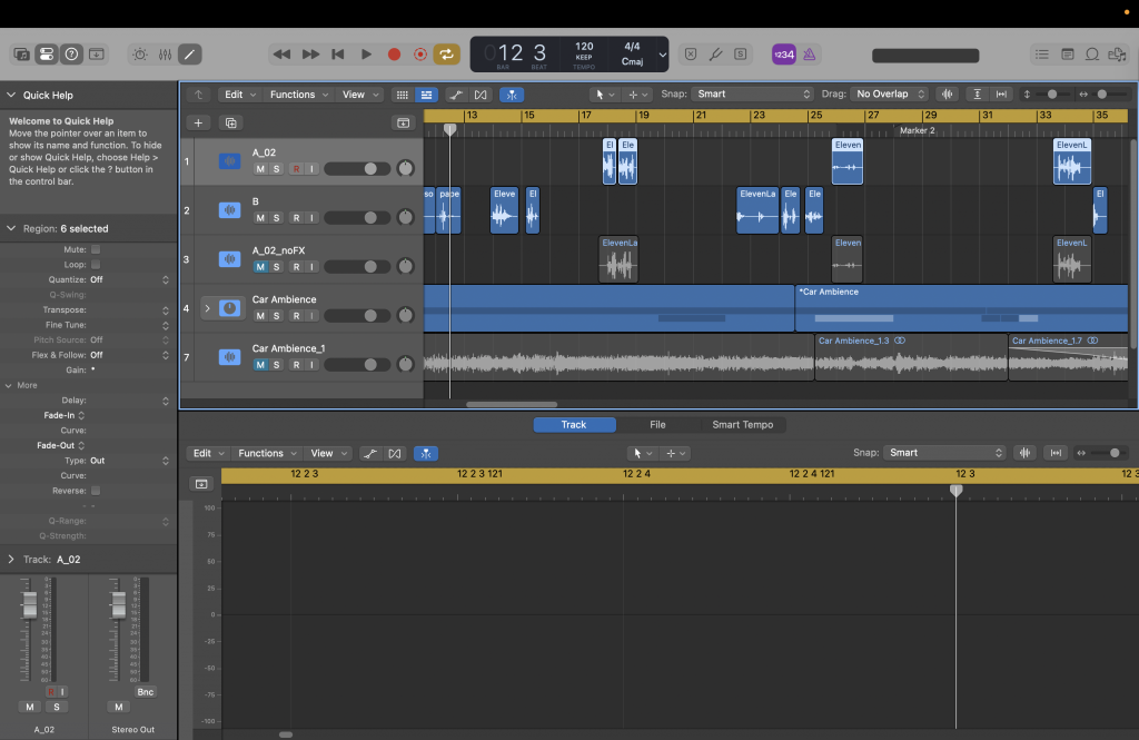 The attached screenshot shows the arrangement within my DAW (Logic Pro), where I’ve laid out the core components of the audio mix